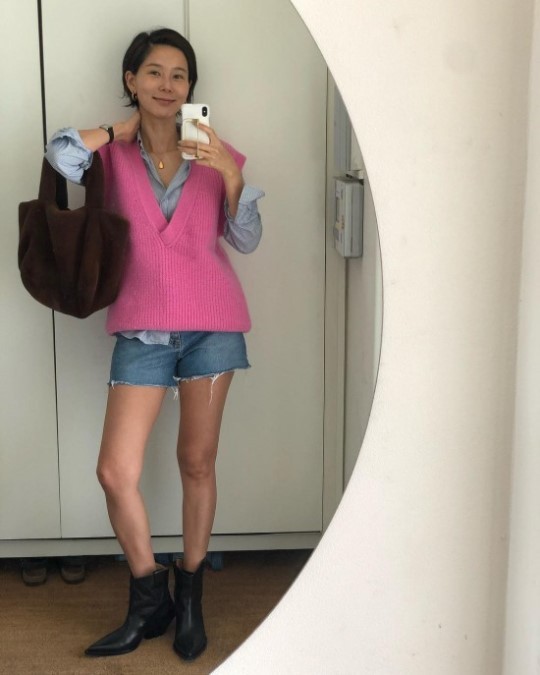 공개된 사진 속에는 김나영이 일터로 떠나기 전 패션을 체크하고 있는 모습이 담겨 있다. 두 아이 엄마라는 사실이 믿기지 않을 만큼 매력적이다.