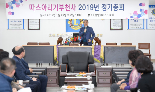 29일 경기 오산시 오산중앙라이온스클럽 사무실에서 곽상욱 오산시장 및 관계자 50여명이 참석한 가운데 '따스아리 기부천사' 정기총회가 열렸다. 사진은 총회에 참석한 곽 시장이 인사말을 하는 모습. (사진제공=오산시청)