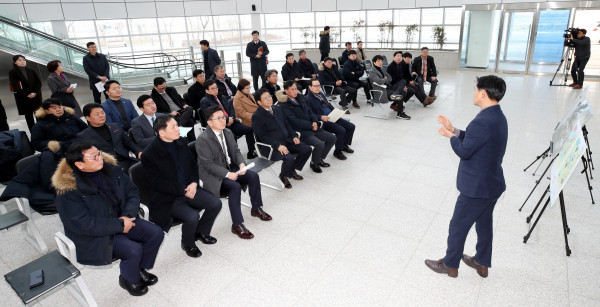 | ▲ ‘2019년 현장방문’의 일환으로 오는 4월 정식개장을 앞둔 인천항 크루즈터미널 현장을 찾은 인천시의회 의원들이 사업현황 브리핑을 청취하고 있다. (사진제공=인천시의회) | ||