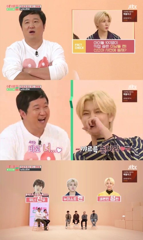 정형돈은 이어 렌에게 "아이돌 100명이 직접 뽑았데. 미남 순위 1위가 BTS 뷔, 2위가 아스트로 차은우, 4위는 너"라고 알린 후 "이거 알고 있었냐?"고 물었고, 렌은 "몰랐다"고 답했다.
