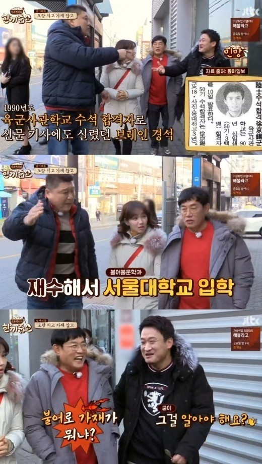 이날 MC 강호동은 서경석을 가리키며 “수석 입학한 육사를 자퇴하고 재수해서 서울대에 입학했다”며 그의 이력을 언급했다.