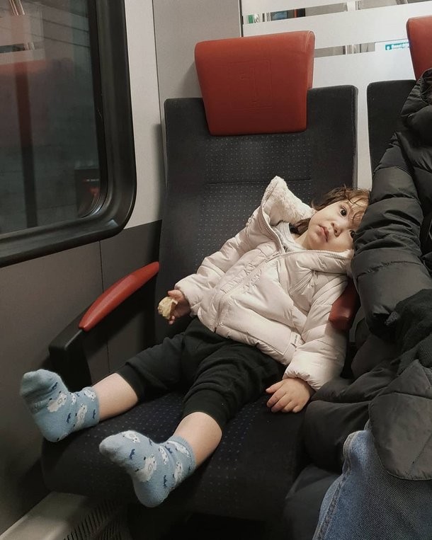 공개된 사진 속에는 좌석에 두 다리를 뻗고 앉아있는 건후의 모습이 담겨 있다.
