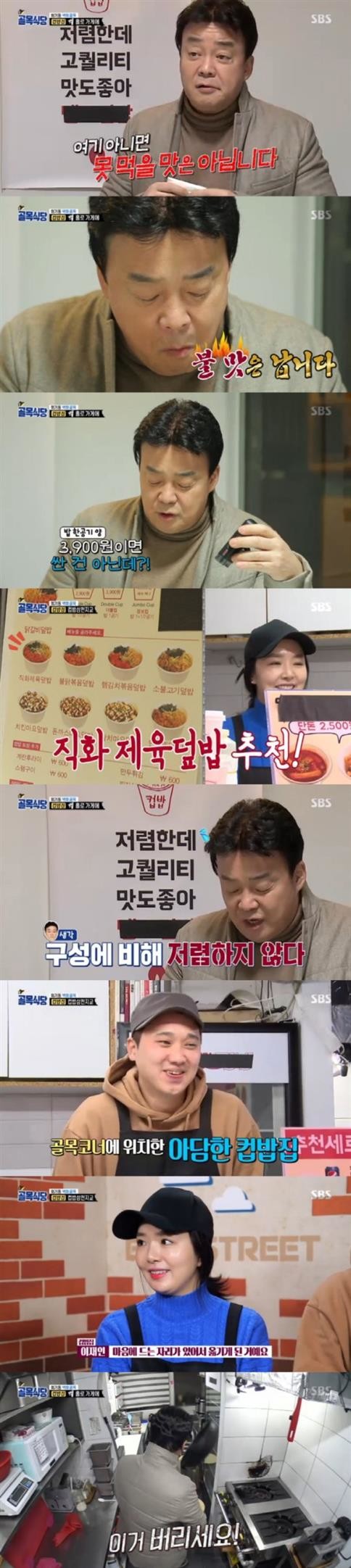 컵밥을 시식한 백종원은 "맛은 무난하지만 여기 아니면 못 먹을 맛은 아니다. 정신적인 만족도는 없다. 밑반찬이 받쳐준다면 좀 더 만족감이 들 수 있을 것 같다"며 전했다.