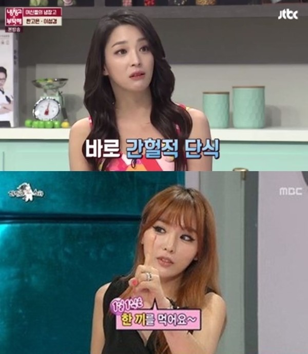 한고은 또한 JTBC '냉장고를 부탁해'에서 몸매 관리 비법을 묻는 질문에 "간헐적 단식을 통해 일주일에 24시간~36시간은 먹지 않고 액체로 된 것만 섭취한다"고답했다.