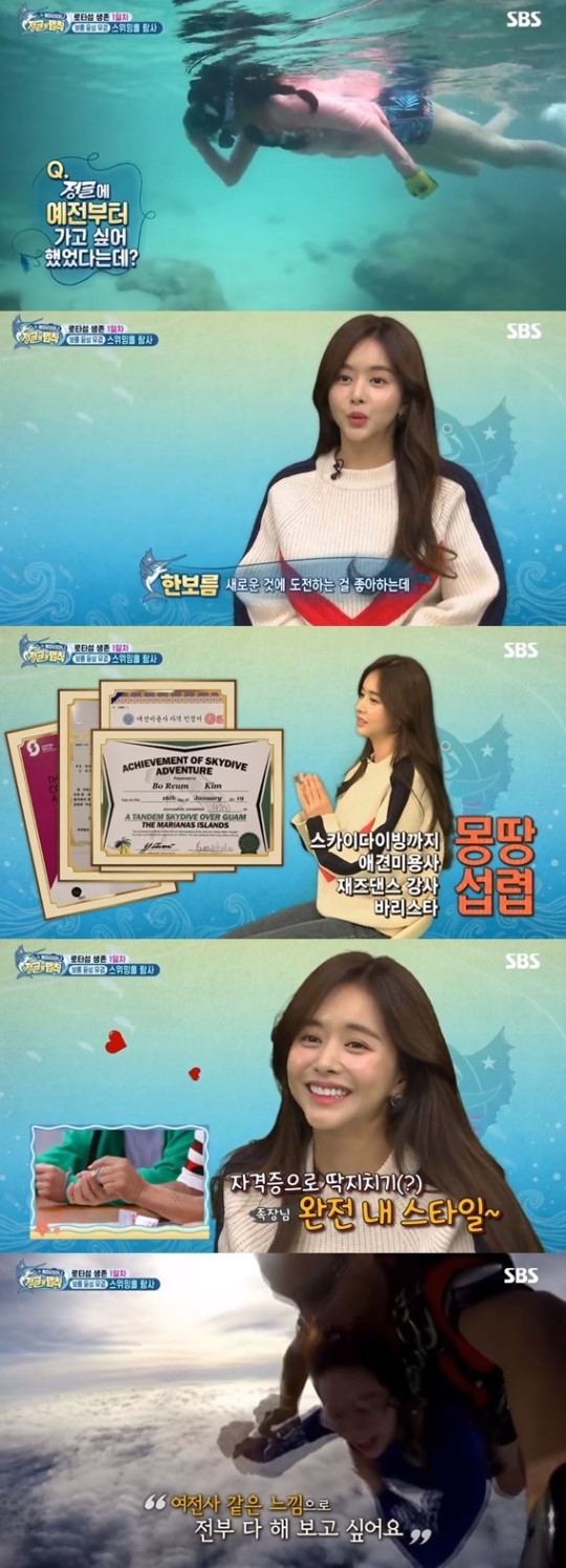 한보름은 바리스타 자격증, 재즈댄스 강사 자격증, 애견미용사 자격증, 스카이다이빙 자격증 등을 땄다고 말하며 다재다능한 모습을 보였다. 한보름은 이어 “헬스, 요가, 롱보드, 볼링, 자전거 등을 다양하게 즐기는 스타일”이라며 “여전사 같은 느낌으로 다 해보고 싶다”고 말했다.