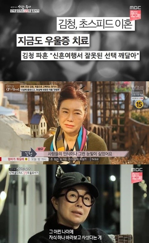 최근 방송된 MBC ‘휴먼다큐 사람이 좋다’에서는 올해 57세인 배우 김청의 홀로서기가 전파를 탔다.