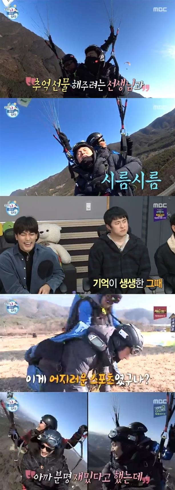 이날 기안84는 성훈과 갑작스럽게 보령으로 떠나 계획에 없던 패러글라이딩을 즐겼다. 기안84는 뜻밖의 곡예비행에 괴성을 내질렀고 땅에 착륙하자마자 주저앉아 버렸다.스튜디오에서 기안84는 “LA에서 배 탔던 생각이 났다”며 당시 상황을 떠올렸다. 그는 “이게 어지러운 스포츠였구나”라고 말했다. 성훈은 기안84를 보며 “아까 분명 재밌다고 했는데”라며 웃음을 터트렸다.