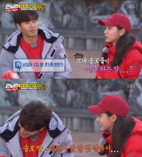 전소민은 “자신감 만땅인 추남”, 김종국은 “자기만 만족하는 추억”이라고 오답을외쳤다