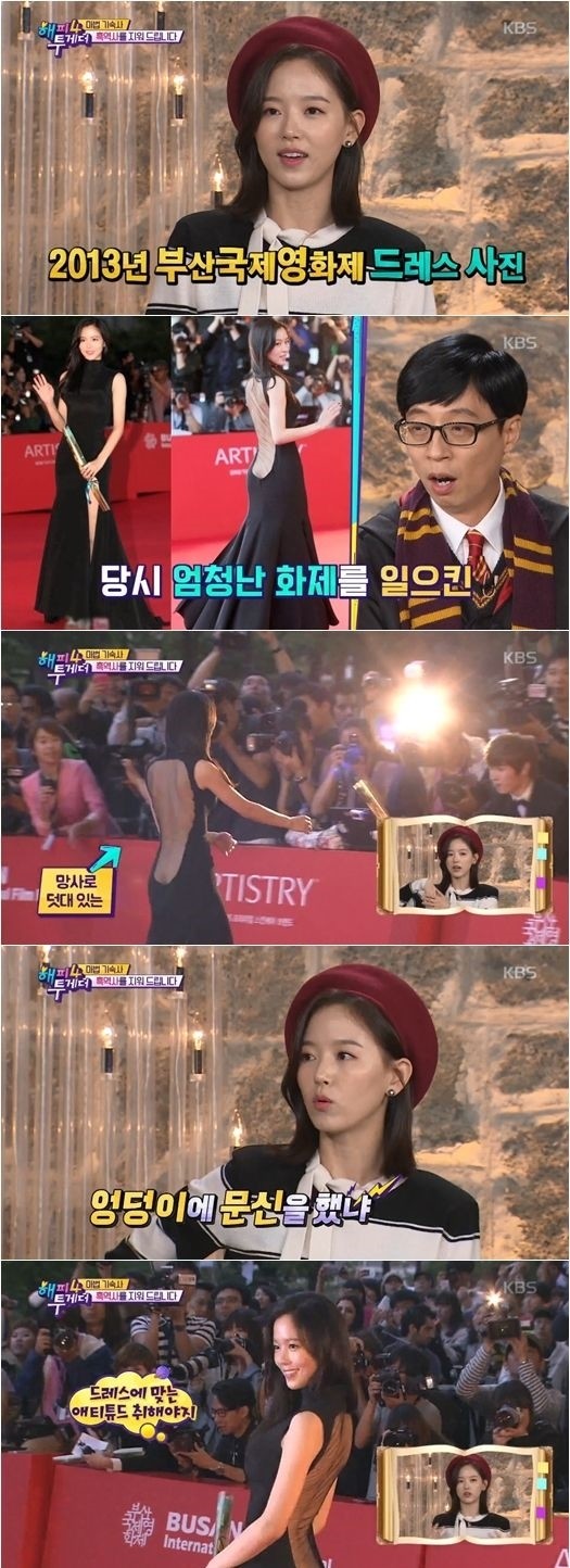 강한나는 최근 방송된 KBS2 ‘해피투게더4’에 출연해 자신의 흑역사로 2013년 부산국제영화제 레드카펫에서 입었던 드레스를 꼽아 이목을 모았다.
