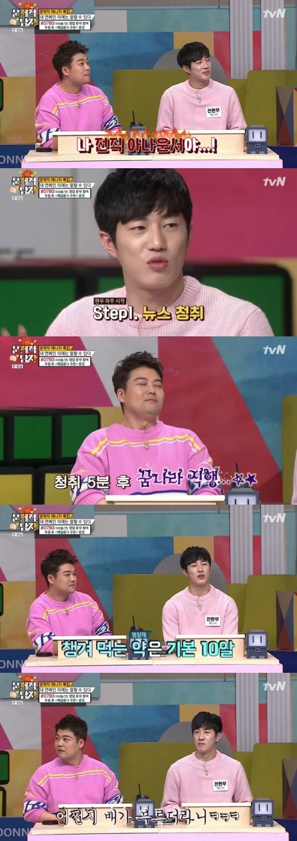 이어 한재상 씨는 전현무의 하루 루틴을 설명하며 "다량의 약을 섭취한다. 비타민부터 따로 먹는 약까지 하루에 10알 넘게 먹는다"고 전했다.