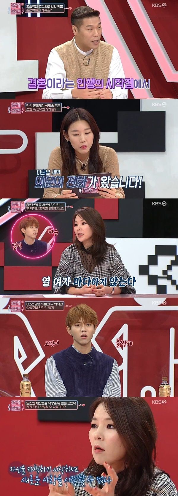이에 김숙은 "연애 기간이 4년 이상 넘어가면 쉽게 잊혀지지가 않는다"고 말했고, 서장훈은 "그러나 결혼이라는 새로운 시작을 해야하는 순간에서는 굉장히 어려운 문제다"며 진지한 모습을 보였다.