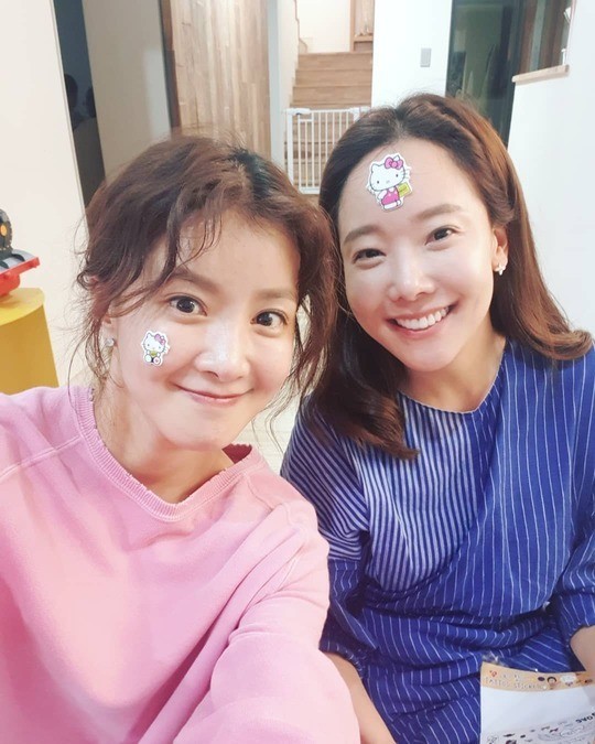 공개된 사진에는 얼굴에 스티커를 붙인 이시영과 소유진이 카메라를 바라보며 환하게 웃고 있는 모습이 담겨 보는 이에게 훈훈함을 안겼다는 후문.