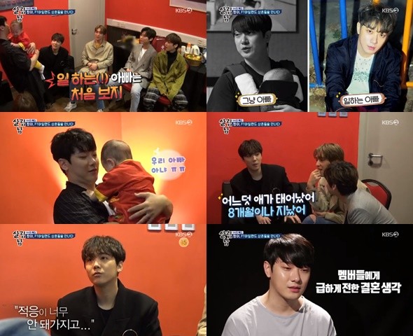 FT아일랜드 멤버들은 짱이를 애정 가득한 눈빛으로 바라보며 ‘삼촌’의 마음을 드러냈다. 일하는 모습을 처음 본 짱이는 메이크업한 최민환의 얼굴을 보자 울음을 터뜨렸다.