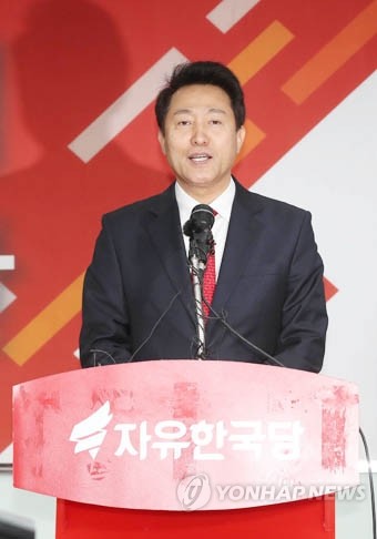 오세훈 전 서울시장이 7일 오전 서울 영등포구 자유한국당 중앙당사에서 당 대표 출마를 선언하고 있다.
