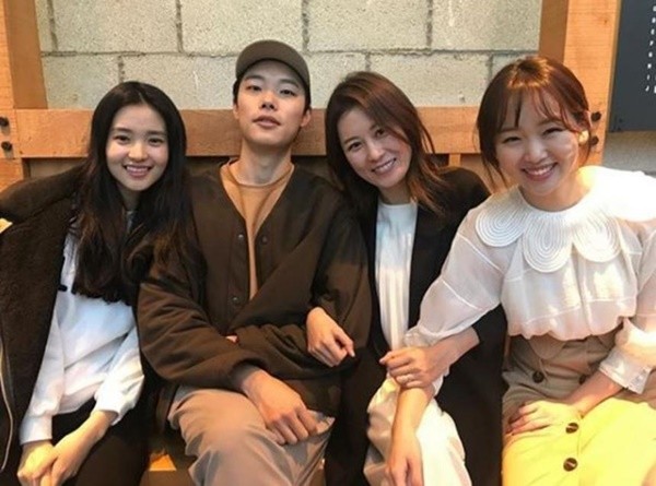 류준열은 관객수 100만 명을 돌파한 것을 자축한 것. 사진 속에는 영화 '리틀포레스트'에 출연한 류준열, 김태리, 문소리, 진기주가 미소를 지으며 카메라를 응시하고 있다.