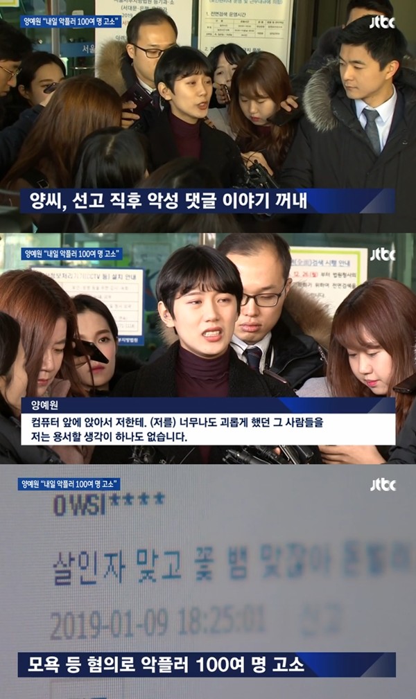 지난 6일 양예원 측은 비공개 촬영회 성폭력 사건과 관련해 악성 댓글을 게시한 악플러 100여 명을 고소했다고 밝히며 이들에게 진정성 있는 사과를 요구해 대중들의 이목을 모았다.