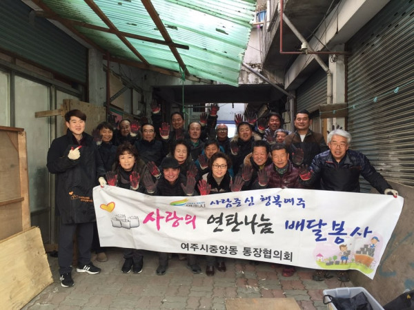 경기 여주시 중앙동통장협의회는 8일 중앙동 지역내 거주하는 장애인 저소득 가정의 겨울 난방을 위해 연탄 나눔 봉사를 실시했다. 사진은 봉사에 참여한 협의회 관계자들이 기념촬영을 하는 모습. (사진제공=여주시청)