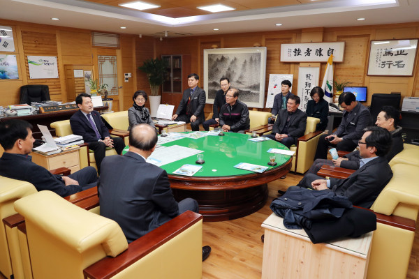 정종순 전남 장흥군수가 최근 군수실에서 공로연수 공무원들과 소통 간담회를 개최했다. 이날 정 군수는 민선 7기가 시작되는 2019년 군정운영 방향에 대해 설명하고, 선배 공직자인 공로연수 공무원들의 의견을 청취했다. 사진은 정 군수가 참여자들과 이야기를 나누는 모습. (사진제공=장흥군청)