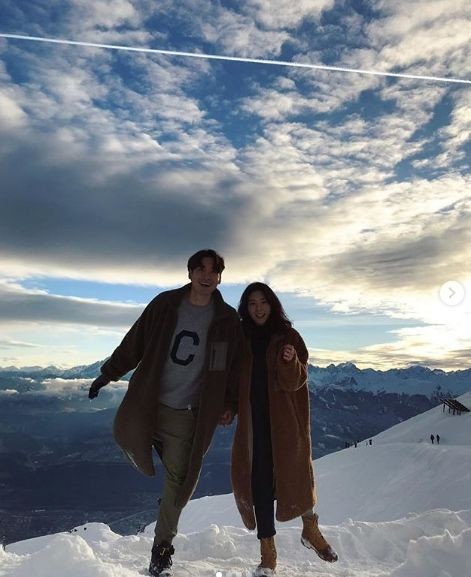 공개된 사진 속 정겨운과 김우림은 눈밭에서 환하게 웃으며 포즈를 취하고 있다.
