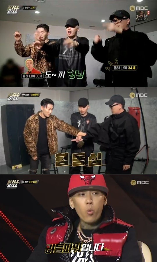 '킬빌' 리듬파워(보이 비, 지구인, 행주)가 천하의 도끼를 꺾고 1차 경연 1위를 차지했다.