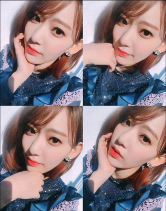 사쿠라는 4분할 된 셀카를 공개하며 다양한 포즈를 취하고 있다. 사쿠라의 뽀얀 피부가 눈에 띈다.