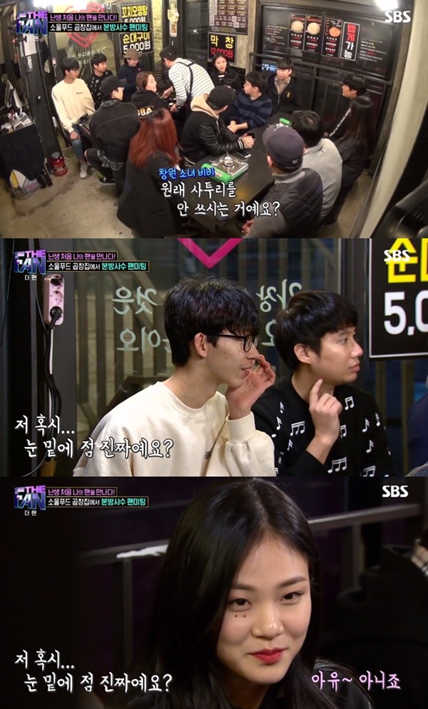 이어 비비는 “저는 궁금했어요. 왜 여기까지 와서 저랑 곱창을 먹을까”라고 의문을 표했다. 경주서 왔다고 말한 남자 팬은 “근데 눈 밑에 점 진짜예요?”라고 물었다.