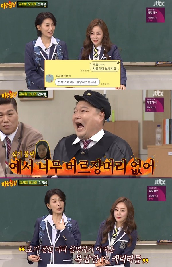 최근 방송된 종합편성채널 JTBC 예능프로그램 ‘아는형님’에서는 김서형, 오나라가 게스트로 출연하는 모습이 전파를 탔다.