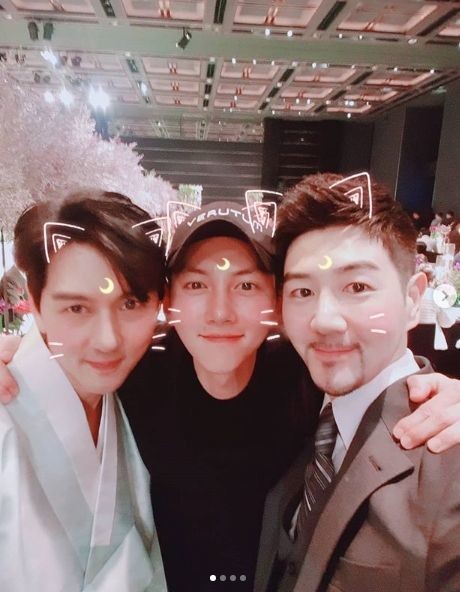 한상진이 공개한 사진에는 이날 웨딩마치를 울린 이필모와 그의 결혼을 축하하기 위해 뭉친 지창욱, 한상진의 모습이 담겼다. 이들은 지난 2009년 방송된 드라마 ‘솔약국집 아들들’에서 형제로 호흡 맞췄던 바. 10년이 훌쩍 지난 지금까지도 훈훈한 인연을 이어가고 있다. 특히 드라마 속 큰 형을 연기했던 손현주는 이날 이필모의 결혼식 사회를 맡아 우정을 과시했다.