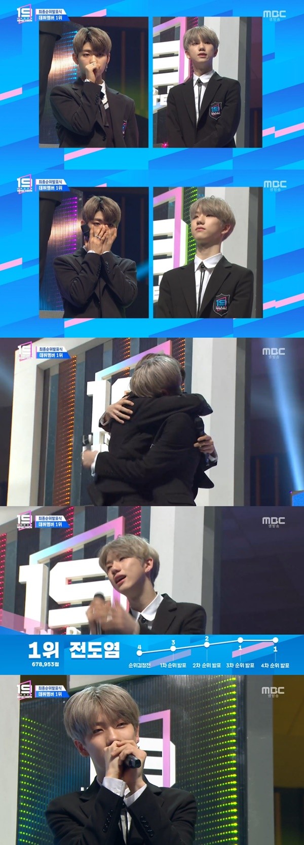최종 1위는 전도염이었다. 전도염은 "이렇게 부족한 저를 1위로 만들어주신 서포터즈 여러분들 감사드린다. 예쁘게 만들어주신 제작진 감독님들 감사드리고, 열심히 함께 해 온 57명 형, 동생들 고생 많았고, 우리를 이끌어주신 디렉터님들 감사드린다"며 눈물을 쏟았다. 이어 "내가 뭘 하든 응원해주시는 부모님 감사드린다. 사랑에 멋진 무대로 보답하는 도염이가 되겠다"고 말했다.