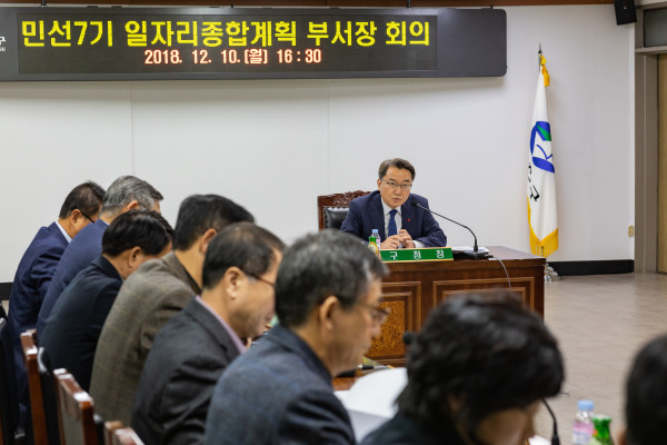 | ▲ 지난해 12월 구청 기획상황실에서 열린 ‘민선7기 일자리종합계획 부서장 회의’에서 김선갑 구청장이 발언하고 있다. (사진제공=광진구청) | ||