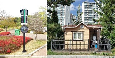 | ▲ ※사진설명: 미세먼지 신호등(좌측) 및 대기오염측정소(우측) 사례 | ||