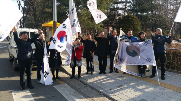 경기 수원시 영통구 영통3동은 11일 1919년 3.1 운동과 임시정부 수립으로 이어지는 독립운동 100년의 역사를 기리기 위해 반달로 거리 일대 1810m 구간에 태극기 상시 게양거리를 조성했다. 게양된 태극기는 진관사 소장 태극기(등록문화재 제458호), 대한민국 임시의정원 태극기(등록문화재 제395-1호), 태극기(가로기) 총 3종 42조로 오는 4월30일까지 게양될 예정이다. 사진은 송영완 구청장 및 참여자들이 기념촬영을 하는 모습. (사진제공=수원시청)
