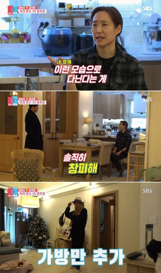 강주은은 정색했고 최민수는 해맑게 웃었다. 그녀는 "옷을 입고 나오라는건 그렇게 입으라는게 아니고"라며 연신 허탈한 표정을 지었다. 이어 "정상적인 옷을 입고 나오세요"라고 당부한뒤 거실에서 그를 기다렸다.