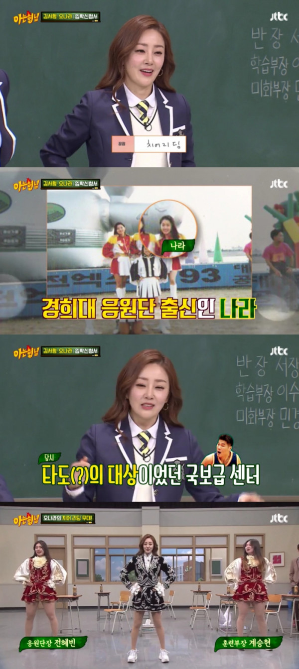 최근 방송된 JTBC ‘아는 형님’에서는 ‘SKY 캐슬’에서 열연한 오나라가 출연해 22년 만에 치어리딩을 선보여 눈길을 끌었다.