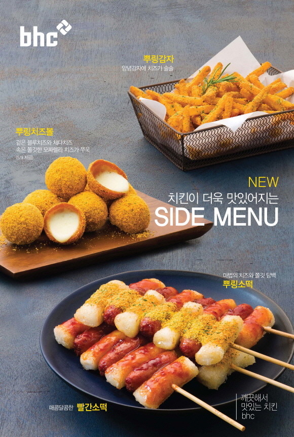 bhc치킨은 지난해 ‘치즈볼’, ‘콜팝’등의 사이드 메뉴가 연일 화제가 되면서 전체 매출을 견인할 정도로 폭발적인 성장을 이뤘다. 이에 사이드 메뉴 확대를 통한 점주 매출 증진에 기여 한다는 방침이다.