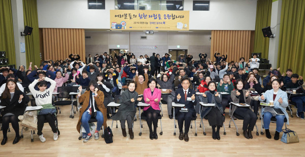 서울 서초구가 지난 11일 장애인 일자리사업 참여자 및 가족 등이 참여한 가운데 ‘희망나눔 장애인 일자리톡’을 개최해 서로를 응원하고 격려하는 시간을 보냈다. 사진은 이날 조은희 구청장(맨앞 가운데)과 관계자들이 기념촬영을 하고 있는 모습. (사진제공=서초구청)