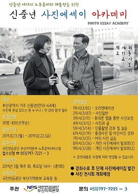 한편 올해 신중년 프로그램은 상·하반기로 나눠 월별로 진행될 예정이며, 올해 첫 프로그램으로「사진+에세이」를 준비 중인 국민연금 송호동 부산지역본부장은 “지난해 예상보다 뜨거운 호응을 받았던 프로그램이라 걱정이 앞선다” 면서 “저도 신중년이지만 신중년 여러분들의 관심과 참여 속에 조금 더 발전해 나가는 모습을 보일 수 있도록 노력하겠다”라고 전했다.