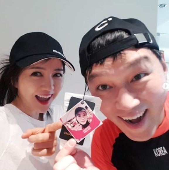 공개된 사진 속 임지은과 고명환은 커플 모자를 쓰고 환하게 웃으며 카메라를 응시하고 있다.