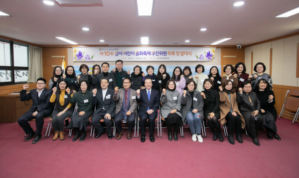 강서구는 12일 구청 대회의실에서 노현송 구청장을 비롯해 축제추진위원 47명이 참석한 가운데 ‘제10회 강서어린이 동화축제’ 추진위원 위촉 및 발대식을 개최했다. 사진은 노 구청장(왼쪽에서 여섯번째)과 추진위원들이 기념촬영을 하는 모습. (사진제공=강서구청)