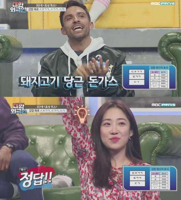 이날 최희는 안드레아스와 3단계 초성 퀴즈에서 맞붙었다. 김밥 재료 ㄷㅈㄱㄱ, ㄷㄱㄱ, ㄷㄱ이 퀴즈로 출제됐다.