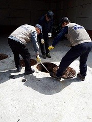 | ▲ 정화조 및 재래식 화장실 유충구제방역 | ||