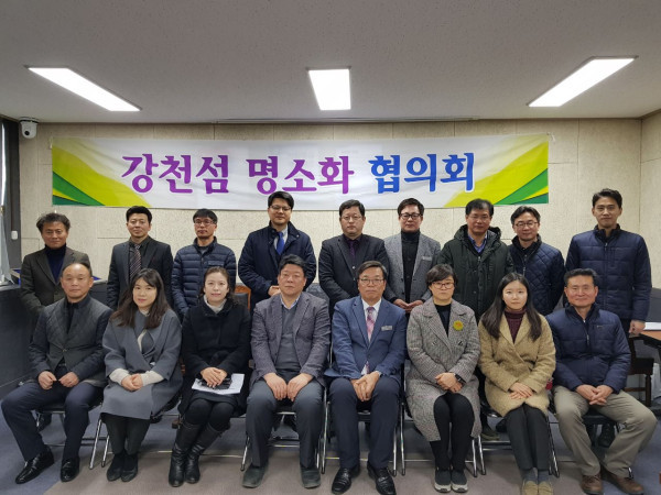 경기 여주시는 13일 시청 상황실에서 강천섬을 친환경 쉼터로 조성하는 계획을 수립하기 위한 ‘제3회 강천섬 명소화 협의회’를 개최했다. 이날 사업 추진 방향에 대한 다양한 의견을 나눴다. 사진은 위원들이 기념촬영을 하는 모습. (사진제공=여주시청)