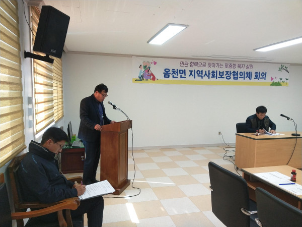 전남 강진군 옴천면은 최근 면사무소 2층 대회의실에서 지역사회보장업체 위원 14명이 참석한 가운데 이달 정례회의를 열었다. 이날 회의에서는 지역사회보장협의체 특화사업 계획 수립을 위한 논의가 이뤄졌다. 사진은 관계자들이 회의를 진행하는 모습. (사진제공=강진군청)