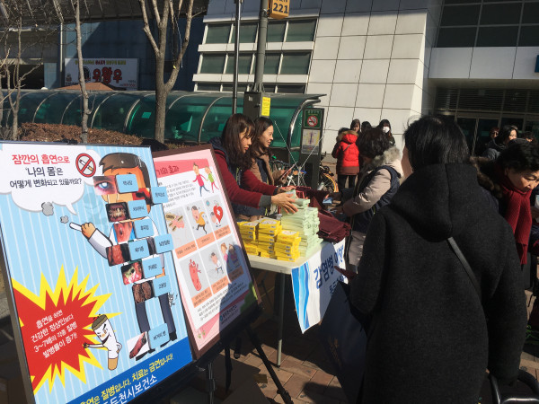 경기 동두천보건소는 최근 지행역 1번 출구 앞에서 지역주민의 건강증진 및 감염병 예방을 위한 거리캠페인을 실시했다. 사진은 보건소 직원들이 시민들에게 흡연예방 및 건강증진 교육자료, 감염병 예방 등의 건강수칙안내 홍보물 등을 배부하는 모습. (사진제공=동두천시청)