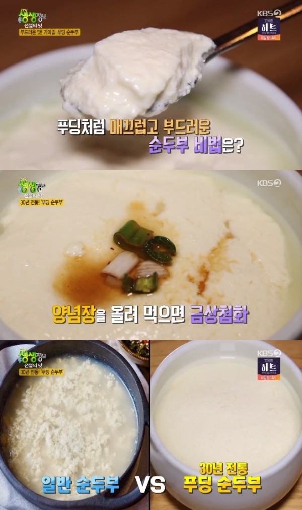 최근 방송된 KBS2 교양프로그램 '2TV 생생정보'의 '전설의 맛' 코너에서는 경기남양주시에 위치한 30년 전통의 푸딩 순두부 맛집이 전파를 탔다.