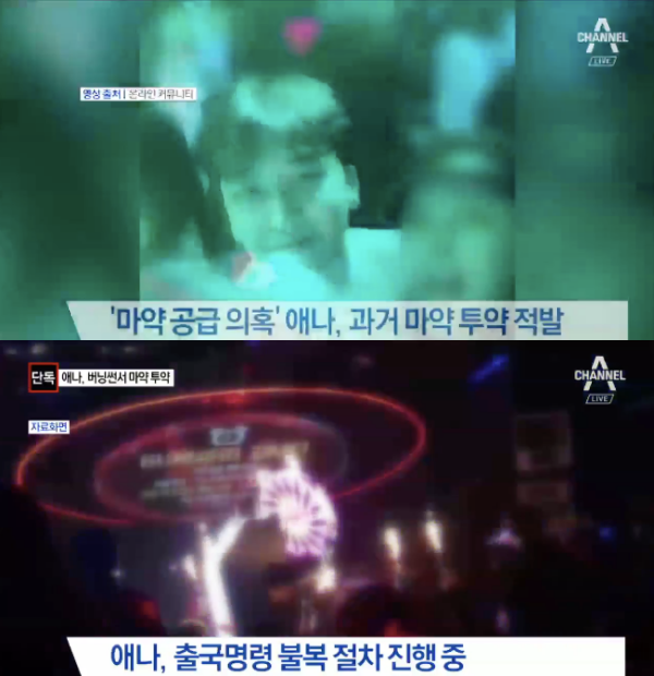 채널A 보도에 따르면 애나는 지난해 9월 버닝썬에서 '엑스터시’를 투약하다 적발돼 '추방' 명령을 받은 것으로 확인돼 놀라움을 안겼다.