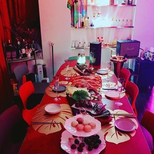 공개된 사진에는 로맨틱한 분위기의 붉은 식탁에 차려진 화려한 음식의 모습이 담겨 있다. 고급스러운 샴페인잔, 독특한 디자인의 테이블 매트까지 박나래의 센스가 돋보인다.