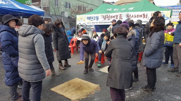 경기 수원시 영통구 매탄2동은 지난 16일 정월대보름을 맞아 매탄2동 지역발전과 주민화합을 위한 척사대회를 개최했다. 이번 행사는 매탄2동 주민자치위원회를 비롯한 8개 단체가 연합 주관했으며, 송영완 구청장과 박광온 국회의원, 이재선·이현구·양진하 수원시의원, 매탄2동 주민 등 약 200여명이 참여했다. 사진은 참여자들이 윷놀이를 하고 있는 모습. (사진제공=수원시청)