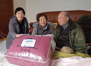 | ▲ 정향채 복지과장은 보훈가족 박 모(91세), 문 모(88세)노인 가장을 방문해 이불을 전달 했다. | ||