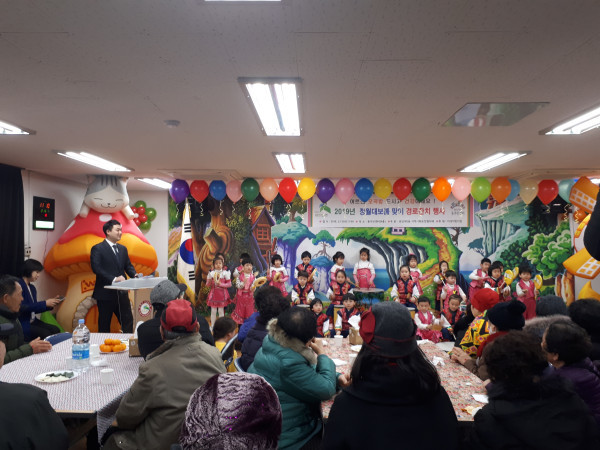 서울 은평구 응암2동 주민센터는 최근 센터 4층 다목적실에서 정월대보름을 맞아 동지역사회보장협의체 주관으로 미성어린이집의 후원을 받아 '정월대보름맞이 경로잔치' 행사를 열었다. 사진은 초청된 노인들이 아이들의 공연을 관람하고 있는 모습. (사진제공=은평구청)